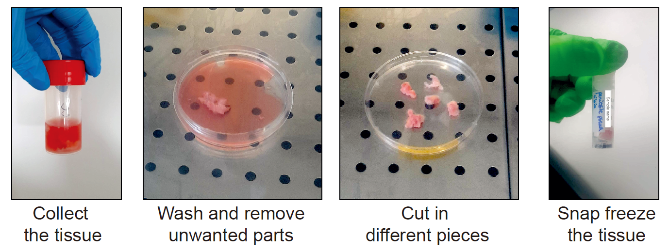 Note: we recommend storing larger pieces of tissue to obtain a higher number of nuclei after nuclei extraction. Store at least 3 pieces of tissues if possible.