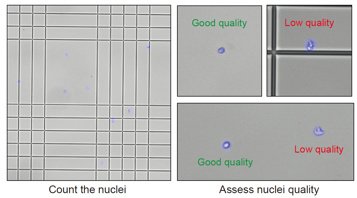Figure 7 : Nuclei counting and quality check. Nuclei should have a clean round shape. Nuclei with abnormal shape are considered low quality.