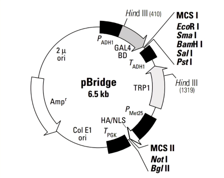pBRIDGE Vector**: Used for constructing the bait vector.