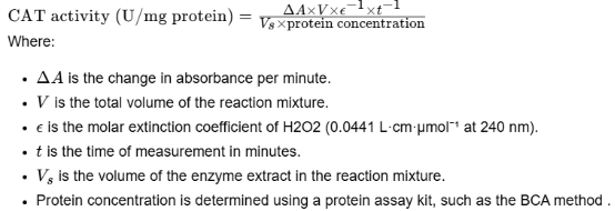 5.3 Reaction Mixture Setup:Prepare a reaction mixture in a 96-well plate or test tubes containing 800 μL of potassium phosphate buffer, 100 μL of enzyme extract, and 100 μL of H2O2 solution. The reaction mixture is designed to provide the necessary components for the catalatic reaction to occur .