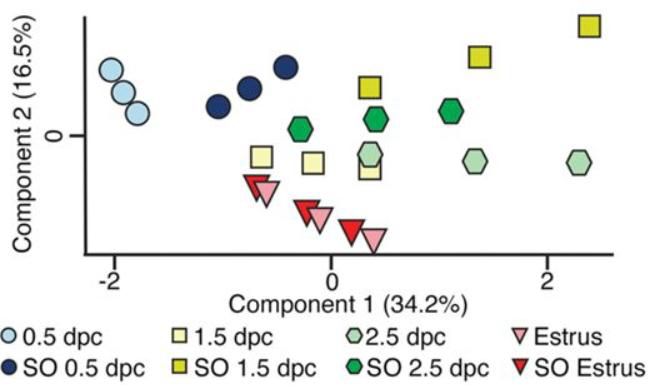 With respect to bulk RNA-sequencing analysis, differentially expressed genes with respect to condition (pregnant/pseudopregnant/superovulation) and time (0.5 days-post-coitus (dpc) pregnant vs 1.5 dpc pregnant) were generated utilizing the Biojupies web-interface pipeline (https://maayanlab.cloud/biojupies/).