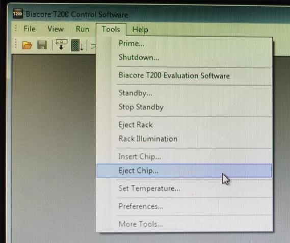 (8)选择Tools菜单中的Eject Chip选项,打开芯片舱门进行芯片更换(图1)。