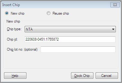 (9)若使用的是新芯片,则选择New chip(图2)。在Chip type的下拉菜单中选择对应的芯片种类(此实验为NTA芯片),在Chip id中填入和芯片相关的实验信息,Chip lot no.中可填入芯片批号(选填)。若是已经使用过的芯片,请选择Reuse Chip,并在Chip id下拉菜单中找到与之相对应的芯片信息。对于使用过的芯片,也可以选择New chip选项,则之前芯片的使用信息不会被查询到。