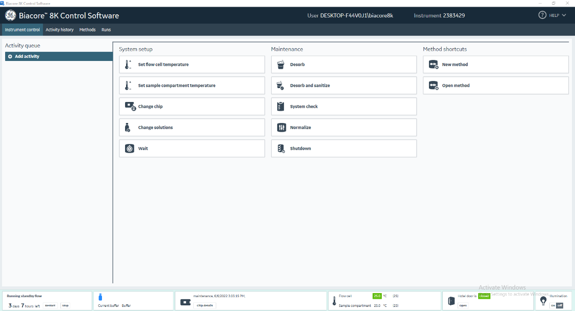(2)打开Biacore T200 Control Software,将软件程序和主机系统建立连接。