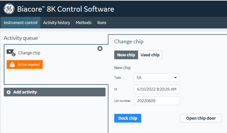 注意:当系统更换缓冲溶液或者芯片后,必须运行Prime程序。Prime时缓冲溶液会冲洗整个流路系统,为下一步的实验做好准备。 - 配体的偶联