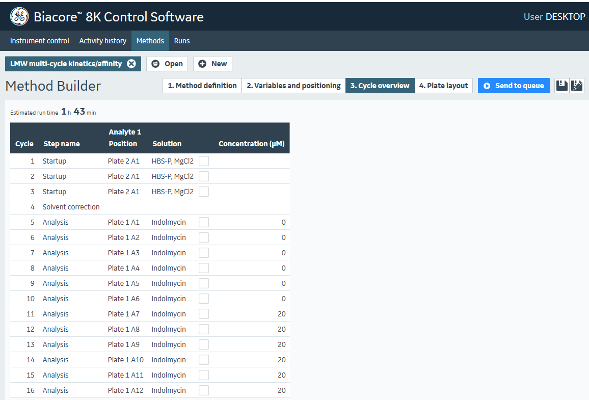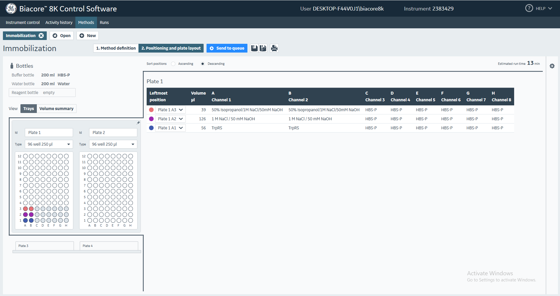 (5)点击Methods,Send to queue,开始His-avitag (biotin)-TrpRS的固定。