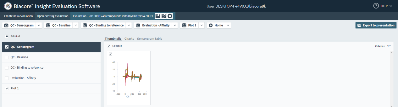 (4)在Home界面,点击plot,即可得此条件下吲哚霉素的响应值,返回Home界面,点击presentation,勾选需要导出的结果内容,点击Export to presentation(图34)。