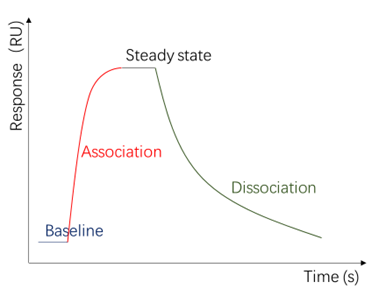 响应值是分析物与配体结合产生的曲线信号水平数字化体现,用RU(Response Unit)表示。1 RU的定义相当于1 pg/mm2的表面浓度变化。