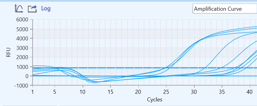 1. The main reason for the decline in the curve may be that the template concentration is too high, and the time to enter the exponential period is earlier than normal, but due to the machine setting, the default is still in the baseline period, and the automatic correction makes the curve suddenly drop. In this case, the baseline data can be modified according to the experimental parameters and the experiment can be re-conducted.