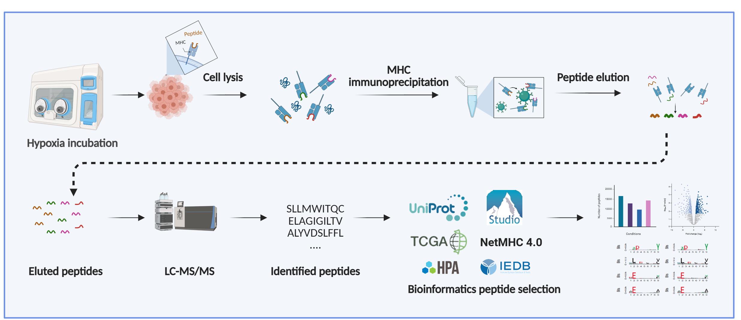 This growing interest in antigen presentation has led to the development of protocols capable of better capturing the full repertoire of peptides displayed by MHC class I and II under various physiological and pathological conditions, including hypoxia, a common feature of the tumor microenvironment [16,17]. Mapping these context-dependent changes is critical for identifying tumor-specific antigens, understanding immune escape mechanisms, and improving the efficacy of T cell-based therapies [18–20].