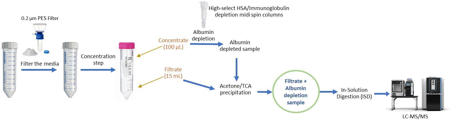 Baby Mattamana, B., Gajjela, R. and K.C., J. (2025). Optimized Secretome Sample Preparation From High Volume Cell Culture Media for LC–MS/MS Proteomic Analysis. Bio-protocol 15(24): e5542. DOI: 10.21769/BioProtoc.5542.