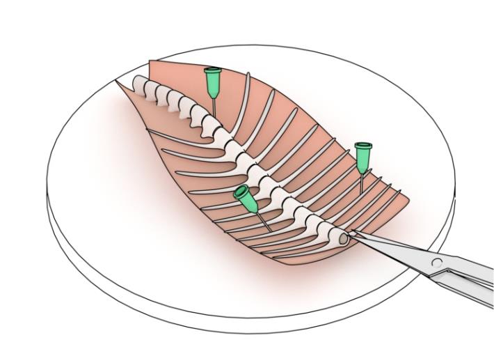 1. Dissection dish with Sylgard-lined bottom (Living Systems Instrumentation, catalog number: DD-90-S-BLK)